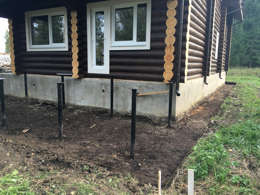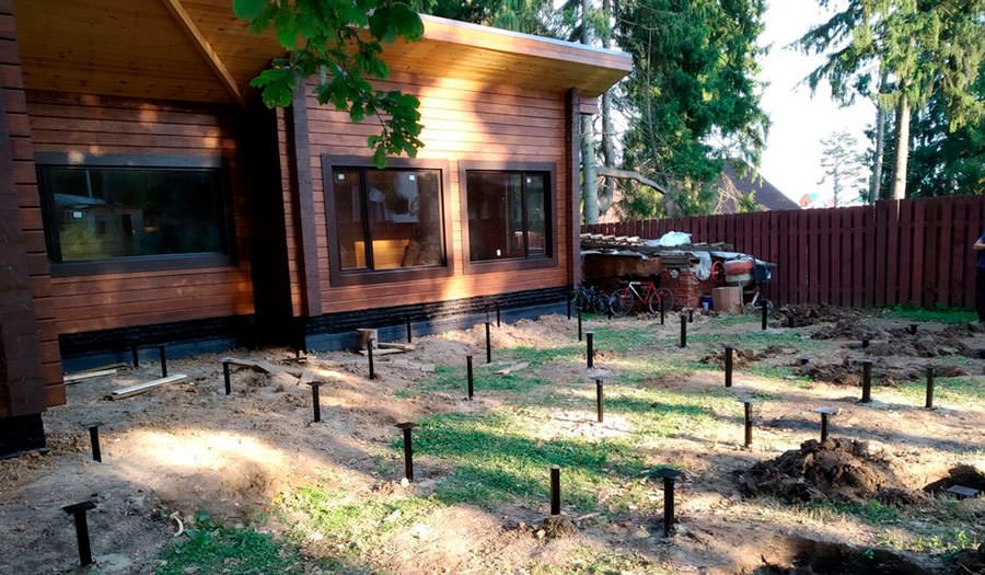 Комплект свай для свайно-винтового фундамента вкручивают вручную или при помощи спецтехники в размеченных местах.