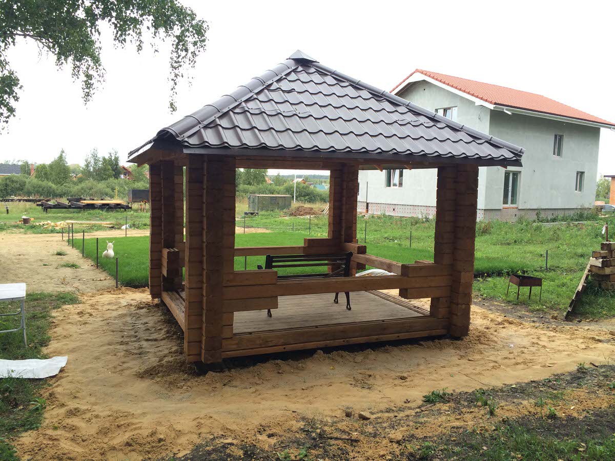 Такие беседки строят для пользования в тёплое время года. Они имеют простую конструкцию: опоры, крыша. Форма может быть любой: круглой, четырёхугольной, многоугольной, ломаной. Возведение такой беседки не требует много времени и средств.