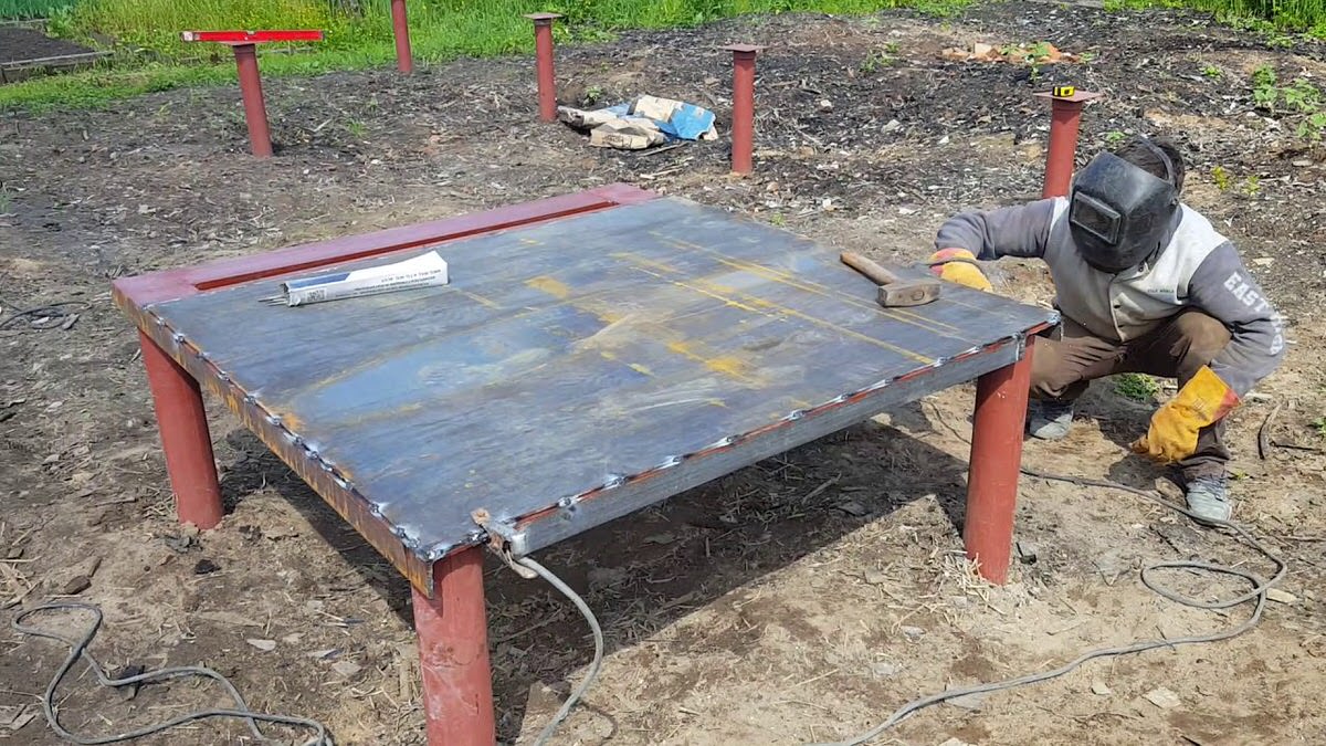 Специалисты после монтажа свай приваривают оголовки и обрабатывают сварные швы антикоррозийными препаратами.