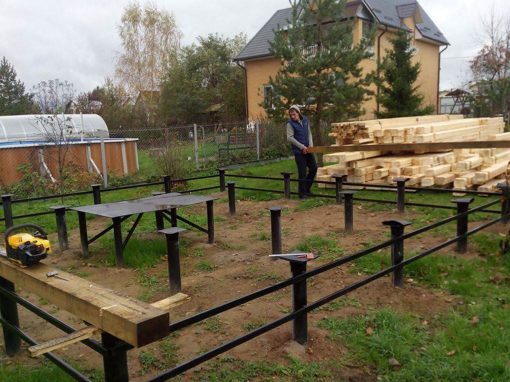 Комплект свай для свайно-винтового фундамента вкручивают вручную или при помощи спецтехники в размеченных местах.